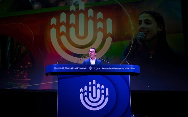 Pennsylvania Gov. Josh Shapiro speaks during a B'nai B'rith Youth Organization International Convention in Philadelphia, February 12, 2026. (Joe Lamberti/AP)
